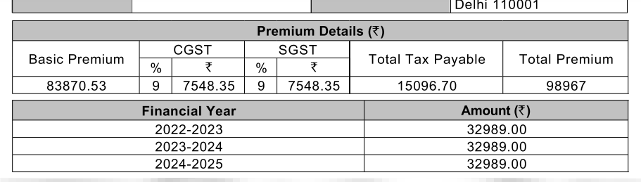 The screenshot below displays a long-term policy document, where the year-wise premium breakdown is clearly visible.